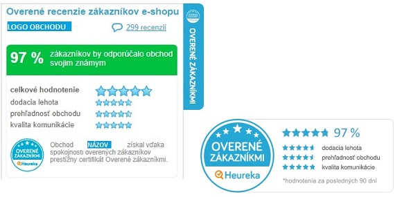 Obr. 1: Ukážka modrého a zlatého Heureka certifikátu Overené zákazníkmi